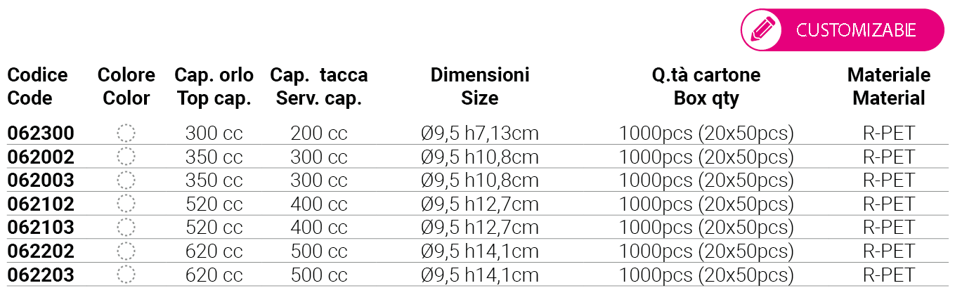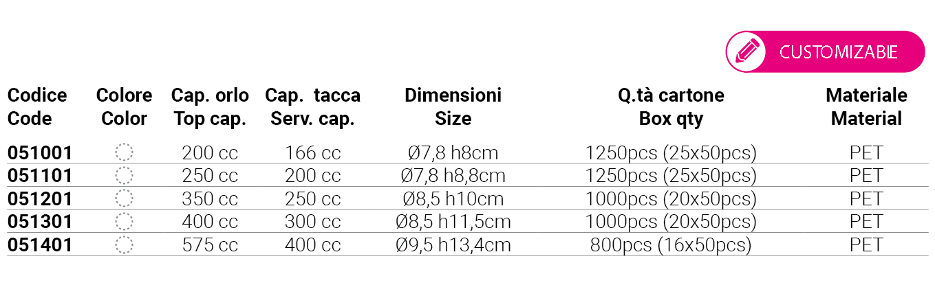 Un bicchiere leggero, sottile e pratico. Realizzato in Light PET, è perfetto per ogni tipo di bevanda fredda e per chi cerca una soluzione versatile senza compromettere l’estetica.