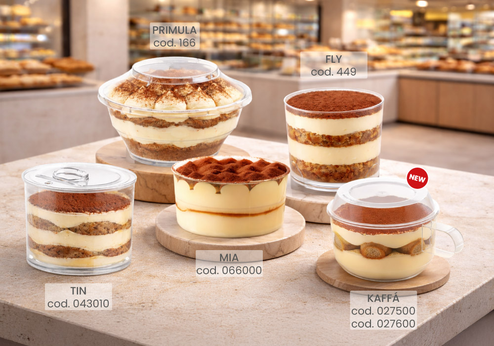 Per questo abbiamo sviluppato le monoporzioni in PS trasparente: soluzioni pratiche ed eleganti, pensate per valorizzare al meglio ogni dolce al cucchiaio. Ogni prodotto è progettato per garantire una lunga conservazione, con una tenuta perfetta da -18°C (fino a 6 mesi) a +70°C (per 2 ore).